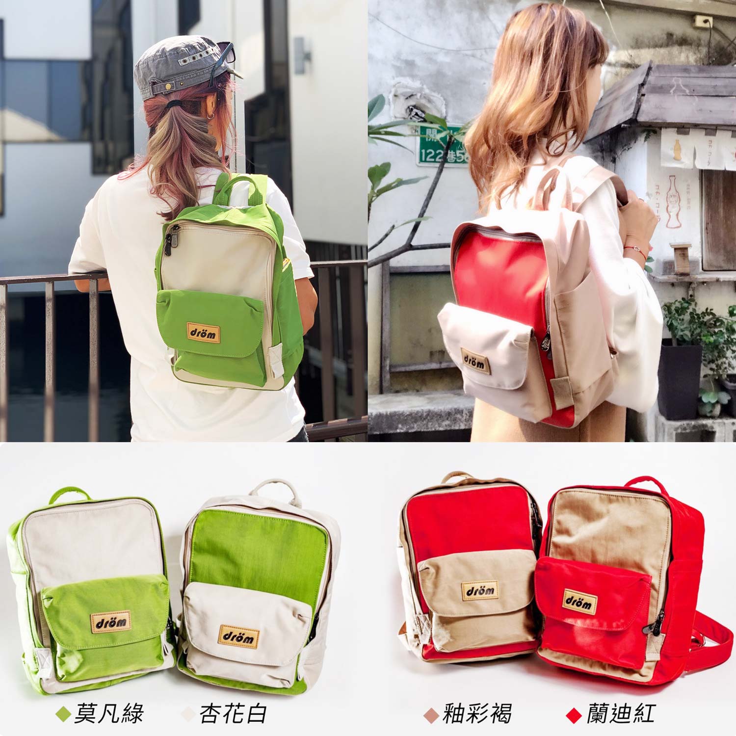 | Dröm夢想撞色餅乾包 -莫凡綠/杏花白/蘭迪紅/釉彩褐- |