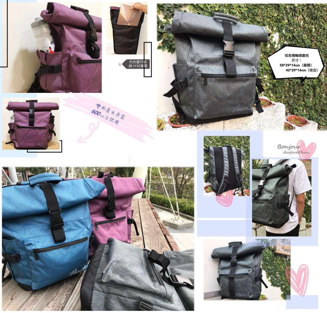 | 防潑水遊趣包 海棠紅 / 經典藍 / 蒼青灰 |
