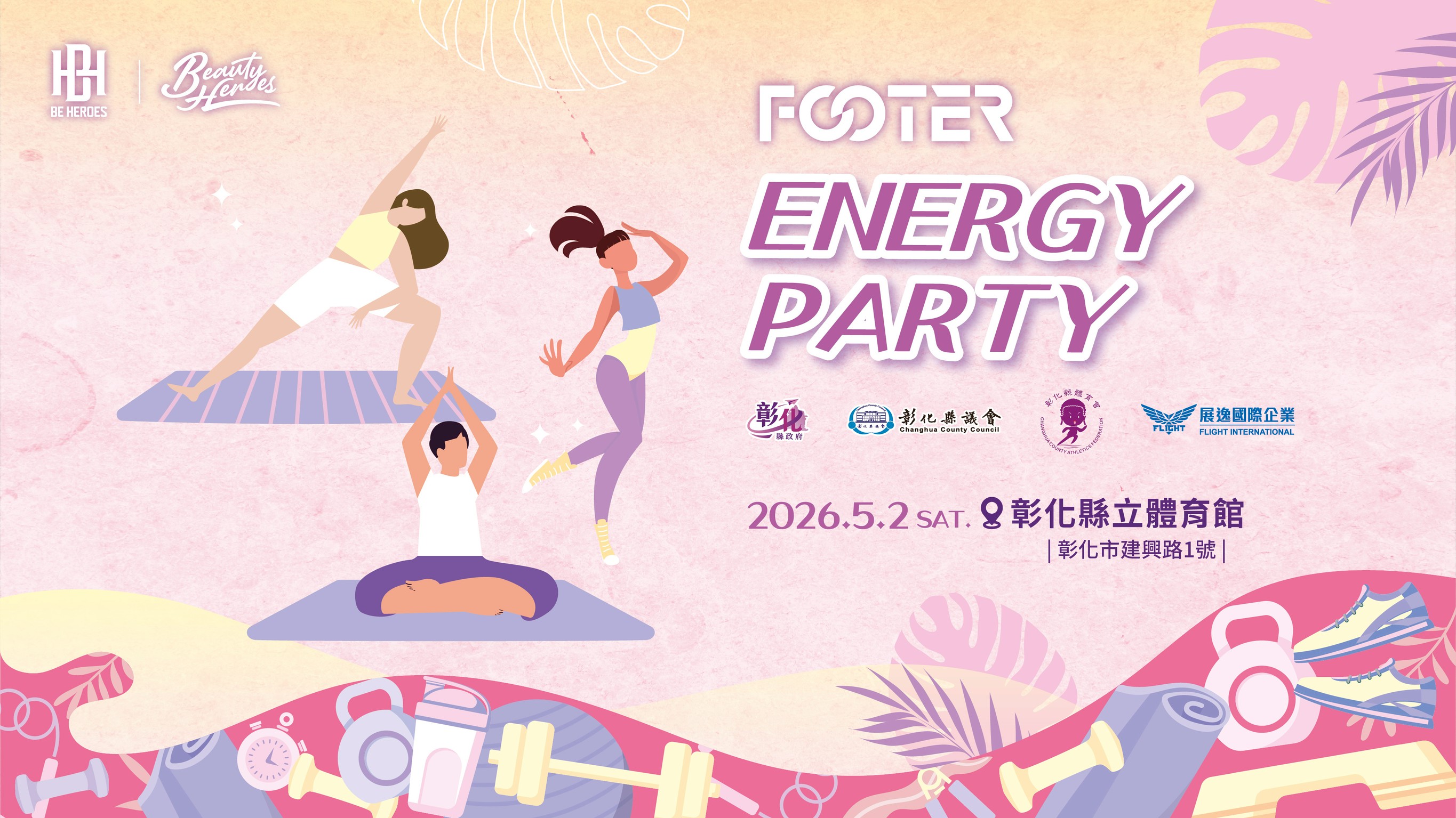 活動內容:在燈光與音樂交織的室內空間,結合 ZUMBA、NTC、YOGA 三種運動型態,打造一場節奏流動、能量切換的運動派對