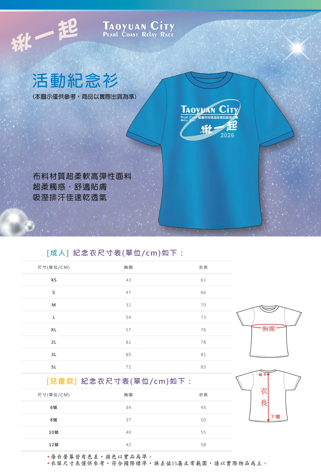 八、鼓勵選手穿著賽事紀念跑衣參賽(變裝組除外),供大會攝影紀念、裁判識別並凝聚團隊向心力;大會提供每位上場選手跑衣一件,皆以網路登記資料尺寸為主,登記後則不予以更換。