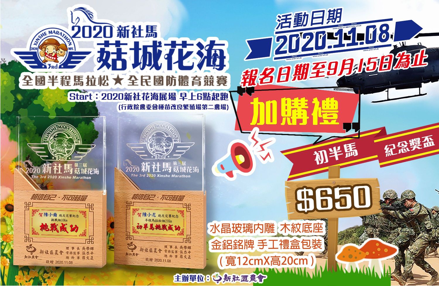 | 2018~2020年 | 新社馬-菇城花海全國半程馬拉松 |