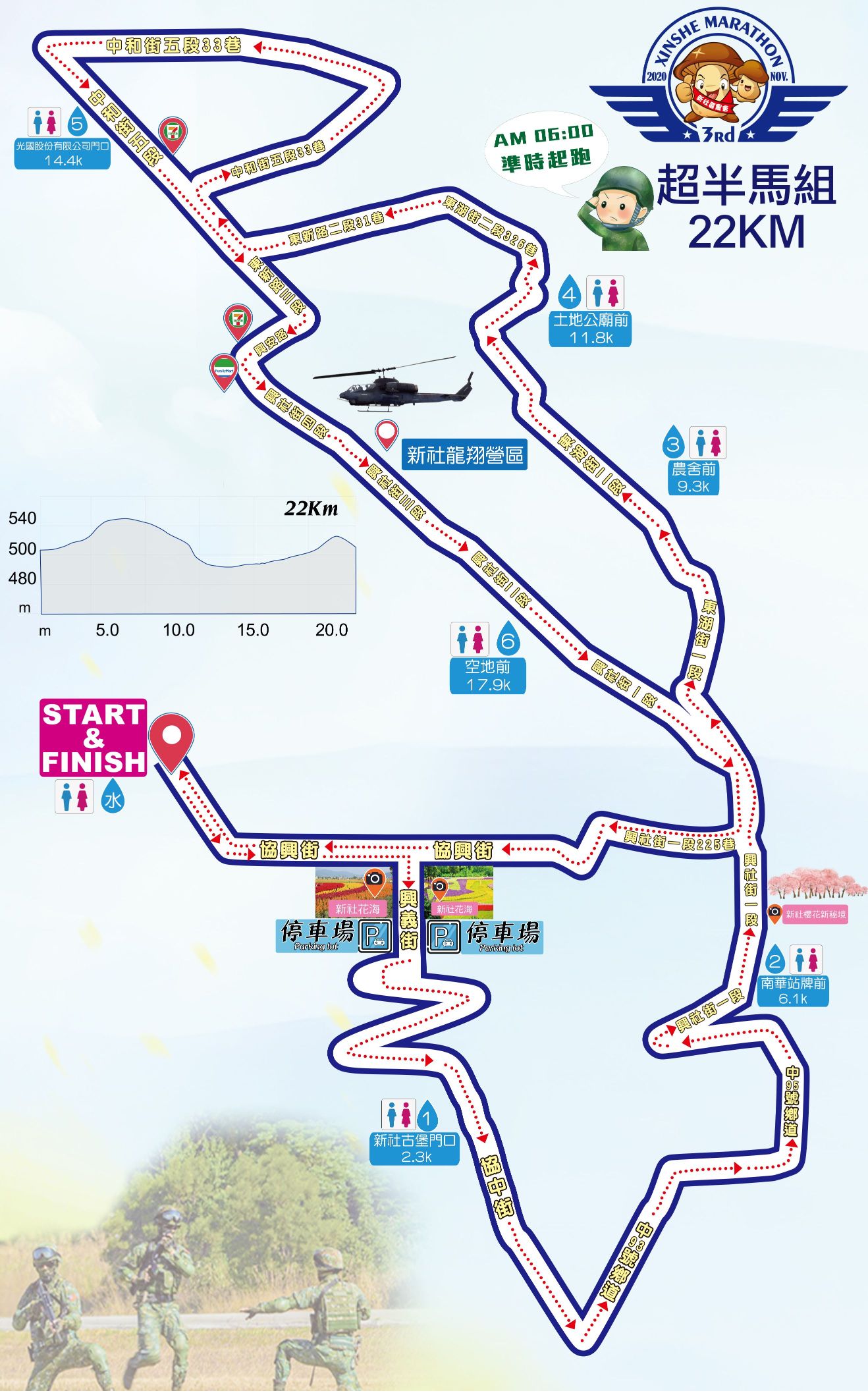 | 06:00 | 超半程馬拉松組(22公里)選手起跑 |